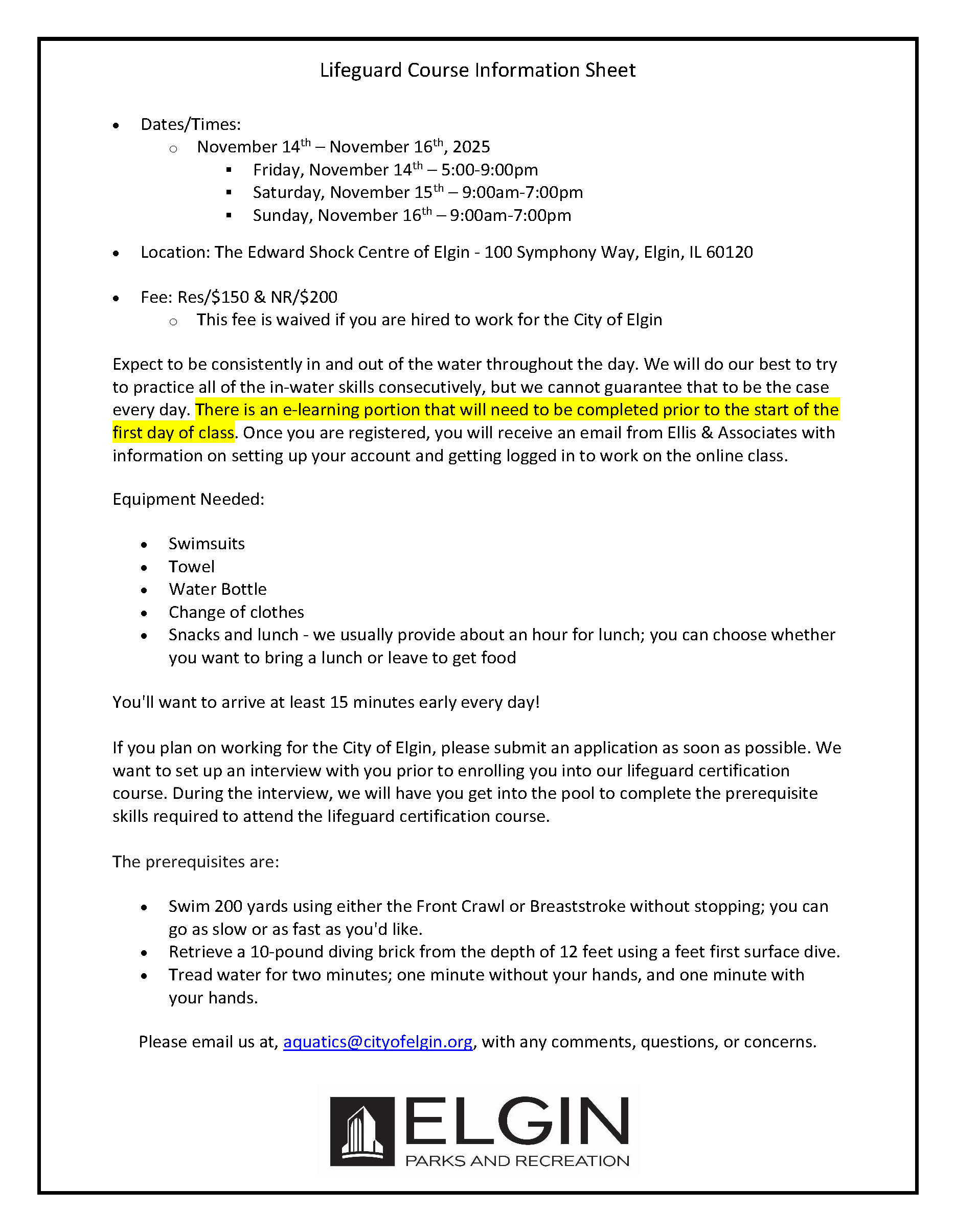 Lifeguard Course Information Sheet – 11.14-11.16.2025