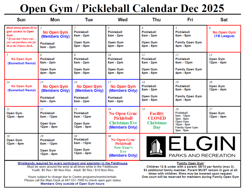 Open Gym Schedule DECEMBER 2025