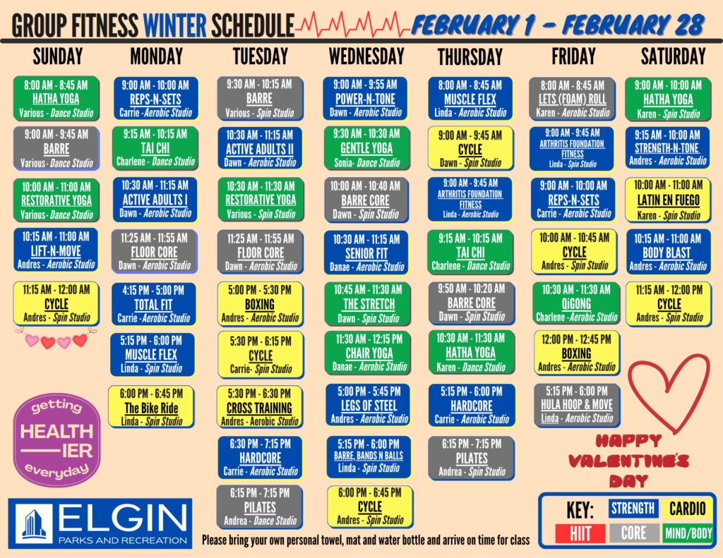 Purchase punch passes or daily drop-in fees for our fitness classes at The Centre of Elgin fitness desk. Pricing listed below. Bring your own towel, mat and source of water. Please arrive to class on time to allow for proper warm-up and instruction.