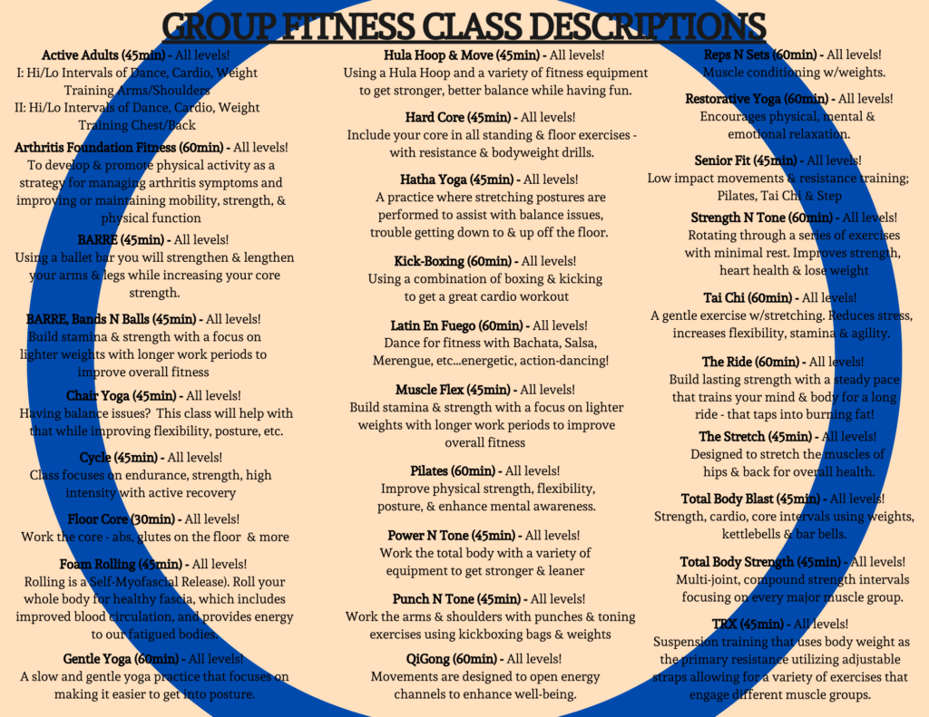 12 and 24 punch passes and daily drop-in fees are available for our group fitness classes. Purchase a punch pass and attend any class of your choice. Platinum memberships include unlimited group fitness classes. For a list of our classes and time go to the Fitness Classes page.