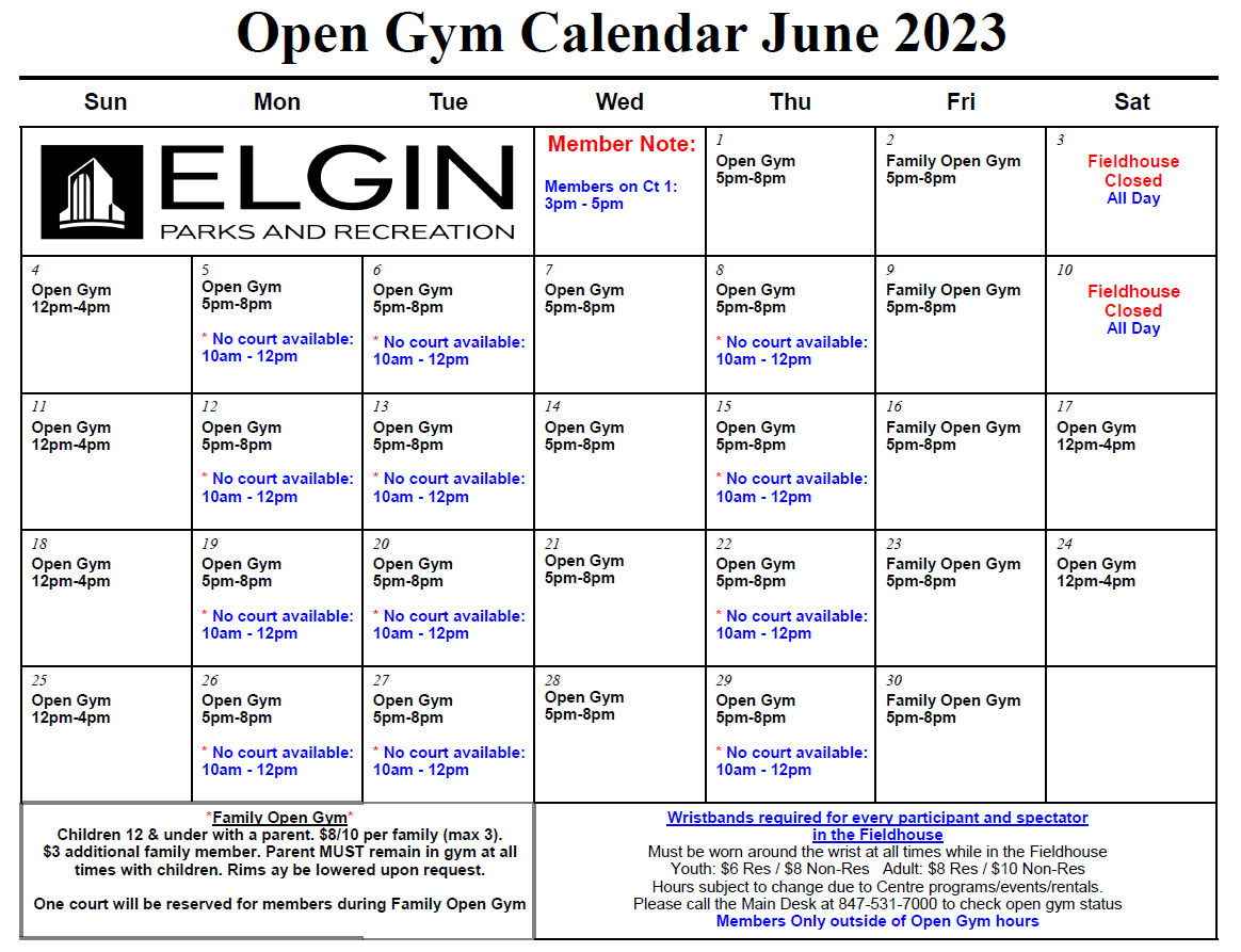 - Open Gym Fees/Schedule